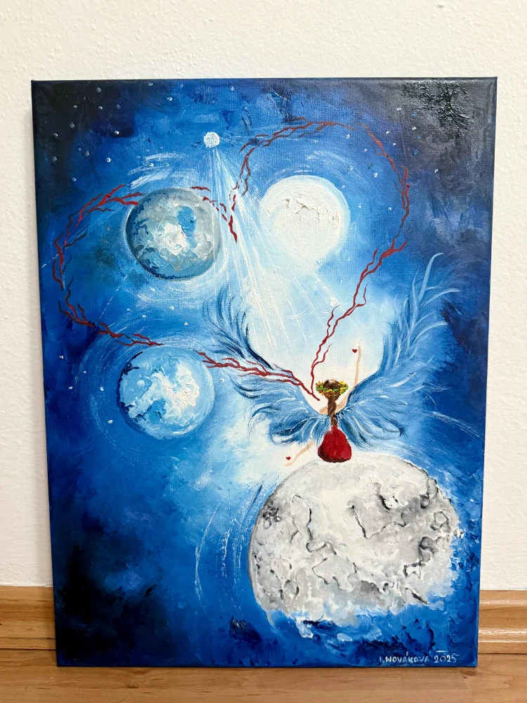 Obraz nese energii lásky, ochrany, duchovní rovnováhy, naděje a síly života. Symbolizuje odvahu do nových věcí, otevčení srdce a naděje v uzdravení všech bolů a starostí. Měkká energie obrazu objímá celé okolní prostředí a ukazuje na nové zítřky plné lásky a síly.