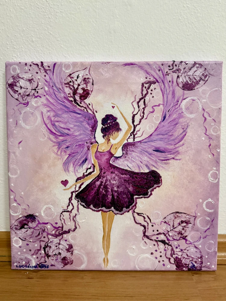 Andělka - tanec životem je název tohoto obrazu. Energie která hýčká a přináší stabilitu ,radost, spokojenost, dary ve všech směrech. Andělka je hřejivé energie která prozáří celý domov. Dohlíží nad každou minutou v životě a objímá láskou celý domov a rodinu.