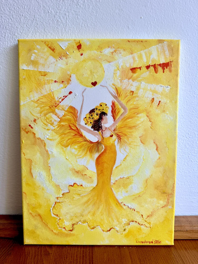 Obraz nese energii života, síly, uzdravení, odvahy, naplnění a lásky k sobě, k druhým a k životu. Symbolizuje odvahu do nových věcí, otevření srdce a naděje v uzdravení všech bolů a starostí. Měkká energie obrazu objímá celé okolní prostředí a ukazuje na nové zítřky plné lásky a síly. Zahřívá a přináší nové životní cesty a možnosti.